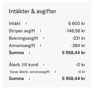 - Efter du mejlat dem intäkterna för en utbetalning får du inte längre återbetala eller boka om en kund för det datumet. Så ifall du behöver återbetala/omboka någon i efterhand som ex. blev sjuk måste du göra det innan du mejlar FH för en utbetalning. Det kan därför vara klokt att vänta några dagar efter datumet hållits innan du mejlar FH.